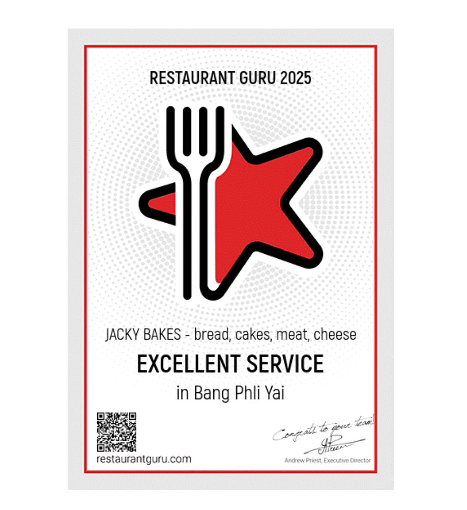 Hi, I’m Jacky, a baker, pastry chef, and confectioner with Swiss roots, living with my family near Bangkok. I’ve been baking with passion for many years, creating delicious bread, pastries, and meat specialties in our bakery and butcher shop, where my family helps me. Our cheese products come from Switzerland, perfectly complementing our range. You can easily order online or pick up your treats directly at our pick-up shop in Samut Prakan.